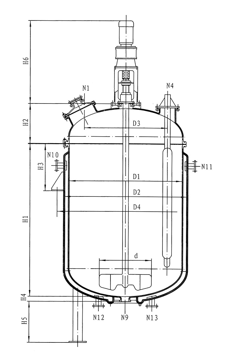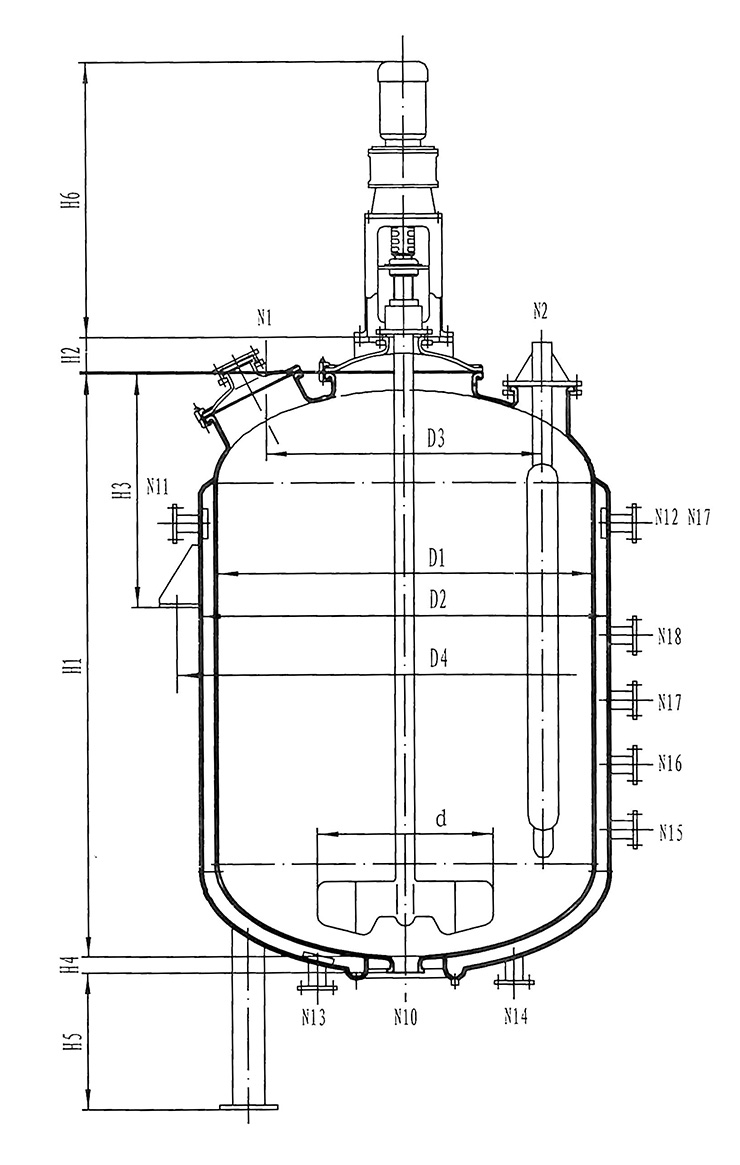 根據GB/T 25027-2018標準設計。筒體上設置與筒體等徑高頸法蘭的帶攪拌裝置的搪玻璃容器,可拆卸式罐蓋,易于清洗和維修。